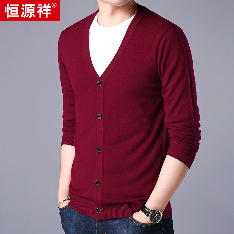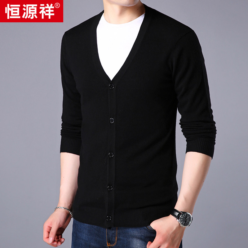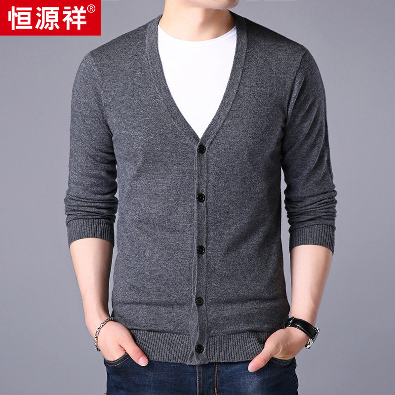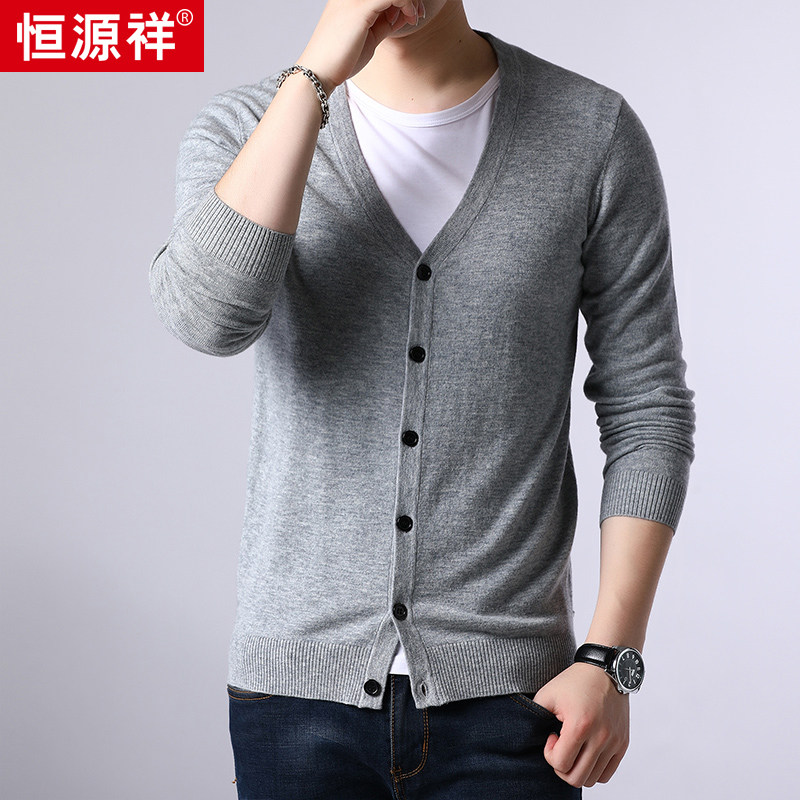 Hengyuanxiang cardigan men's cardigan youth V-neck thin knitted bottoming shirt jacket solid color sweater autumn and winter men's clothing