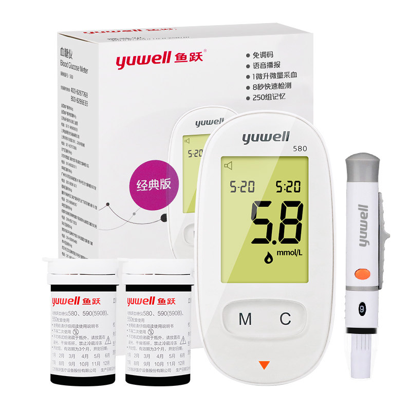580 blood glucose meter stand-alone (including blood collection pen without test paper) 590 blood glucose meter stand-alone (including blood collection pen without test paper) 50 pieces of test paper needle alcohol cotton 100 pieces of test paper needle wine