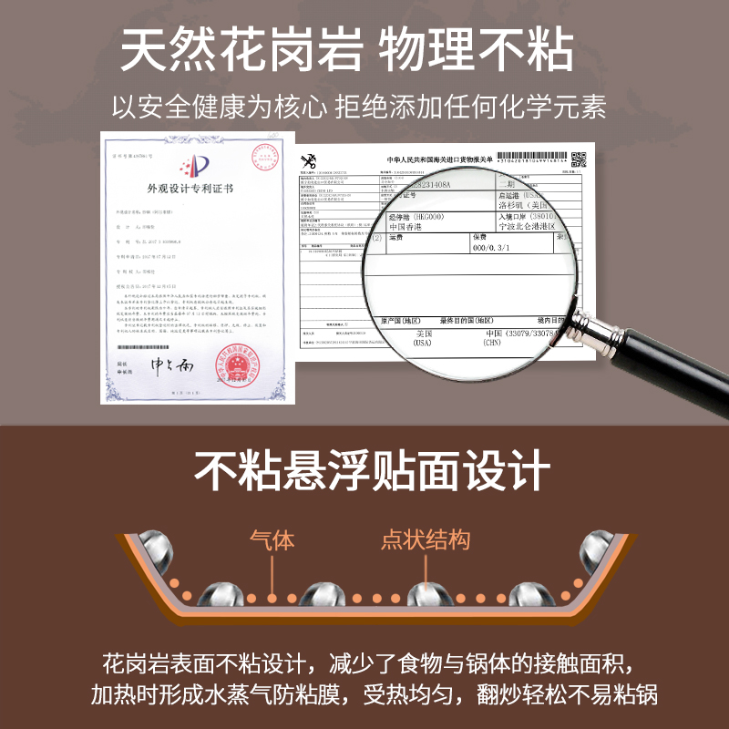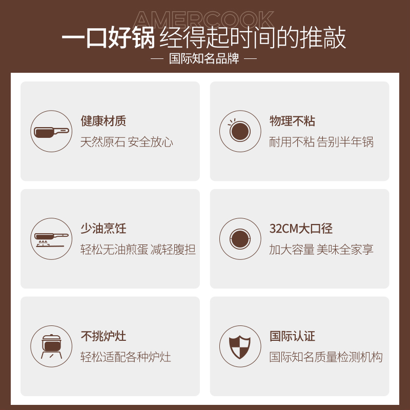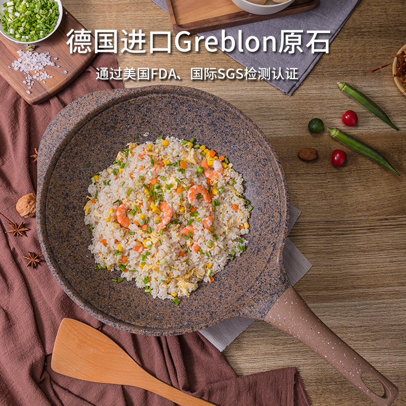 Amercook Alfita imported wheat rice stone non-stick pot Household flat bottom fume-free wok Gas induction cooker