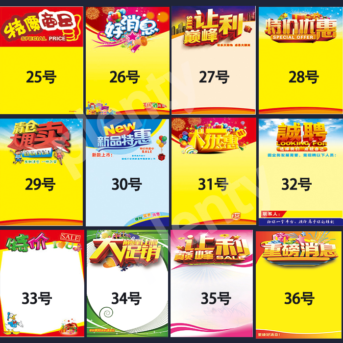 50 large numbers POP Poster Paper Blank Double-sided Advertising Paper Supermarket Pharmacies Promotion Paper Hand-painted Poster price tag