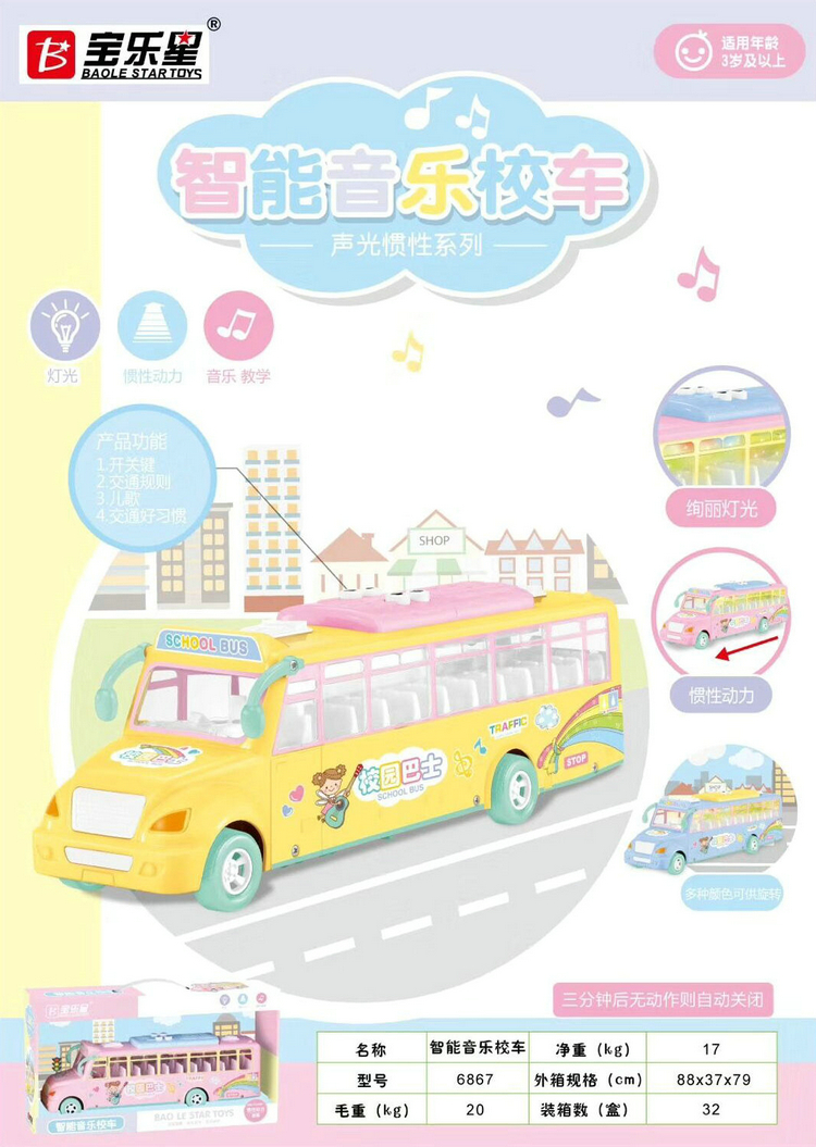Inertia Cartoon School Bus 6867 Sound And Light Toy Bus Car Puzzle Children's Toy Hair Mix