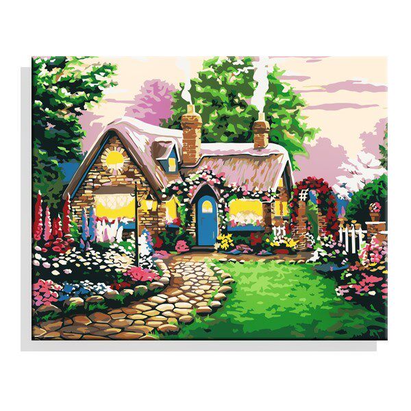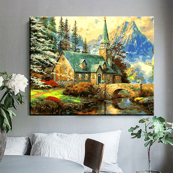 New products Digital oil painting Hand painted European-style Cottage Villa Forest Landscape scenery Living room Bedroom Decorative Painting