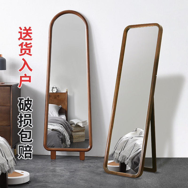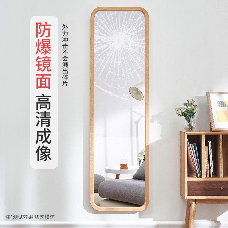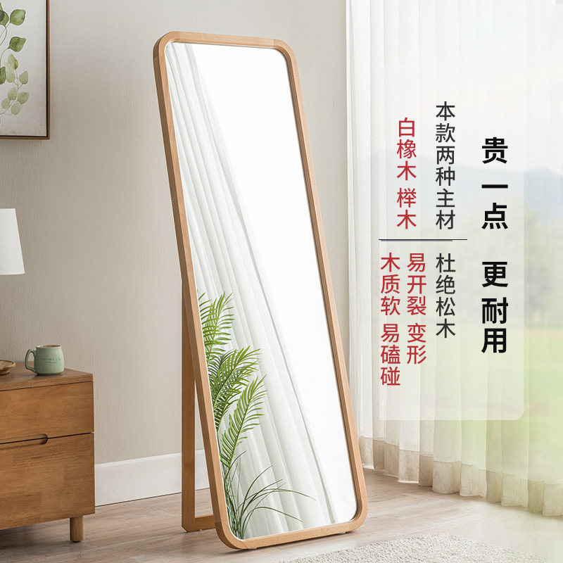 Jiayi Nordic solid wood full-length mirror Bedroom mirror Full-length mirror Wall-mounted household simple wall-mounted fitting floor-to-ceiling mirror