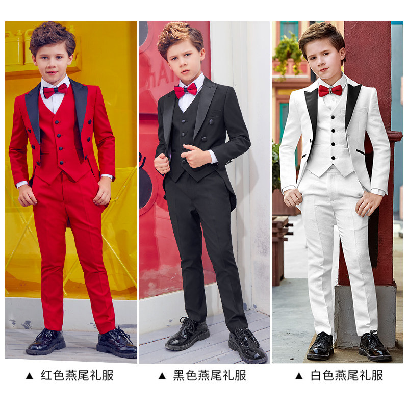 Children Suits Tuxedo Flowers Tuxedo Dresses Big Kids Piano Show Host Costumes Boy West Suit Suit Spring