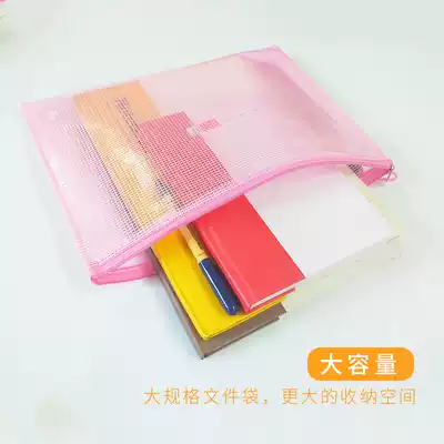 Good and Shun grid zipper bag A4 transparent mesh zipper bag file bag paper bag examination paper storage zipper folder plastic file grid canvas hipster Korean cram bag zipper Hand bag