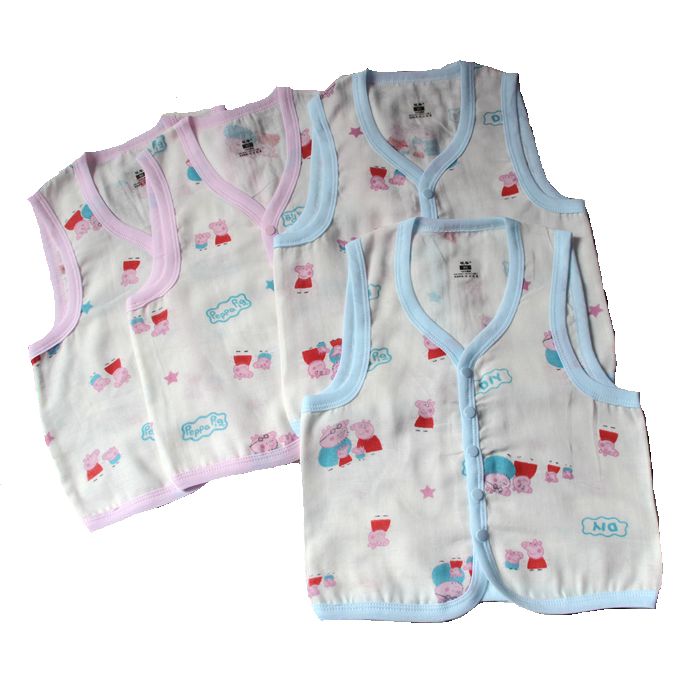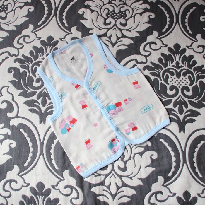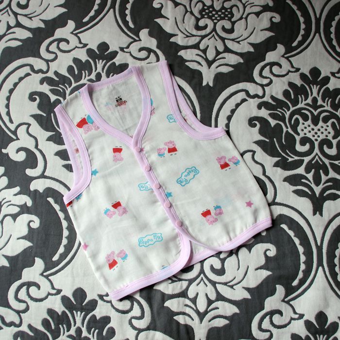Warm summer pure cotton gauze vest Ultra-thin cotton waistcoat Pink pig girl's ultra-thin open button vest