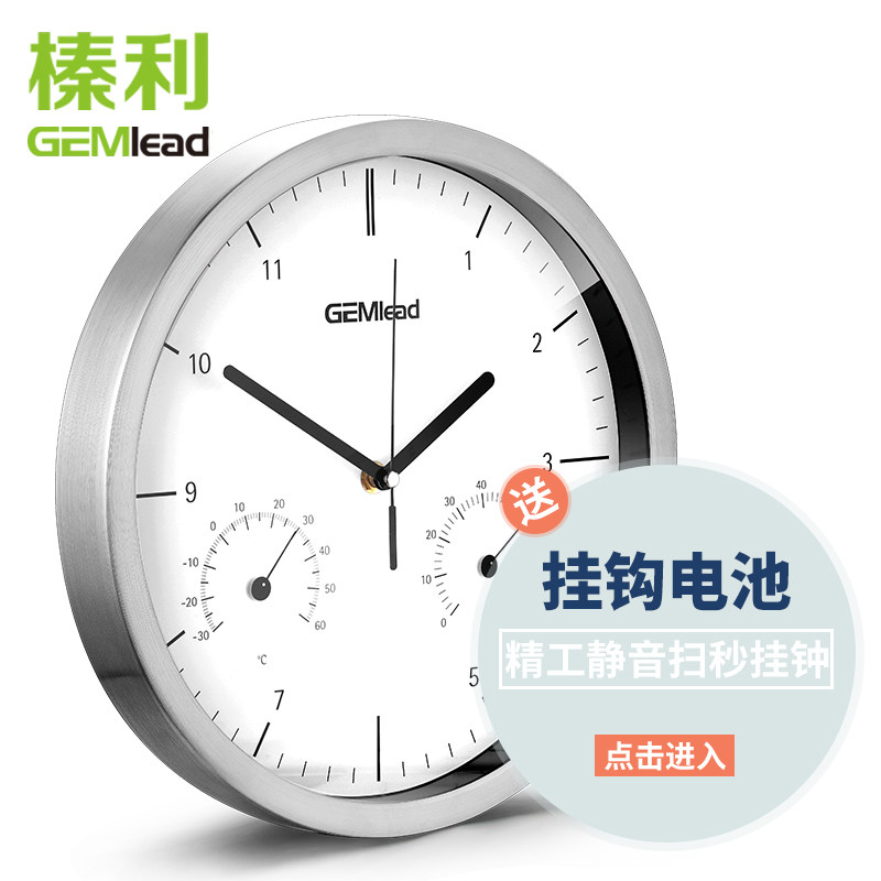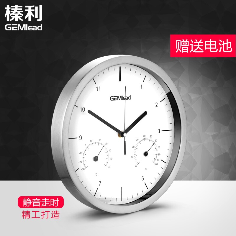 Hazelli temperature and humidity meter mute temperature and humidity wall clock stainless steel shell wall watch office clock watch time 30cm