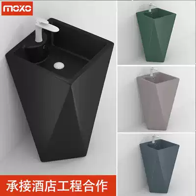 One-piece ceramic column basin Balcony washbasin Square powder room mini household washbasin Floor-to-ceiling washbasin