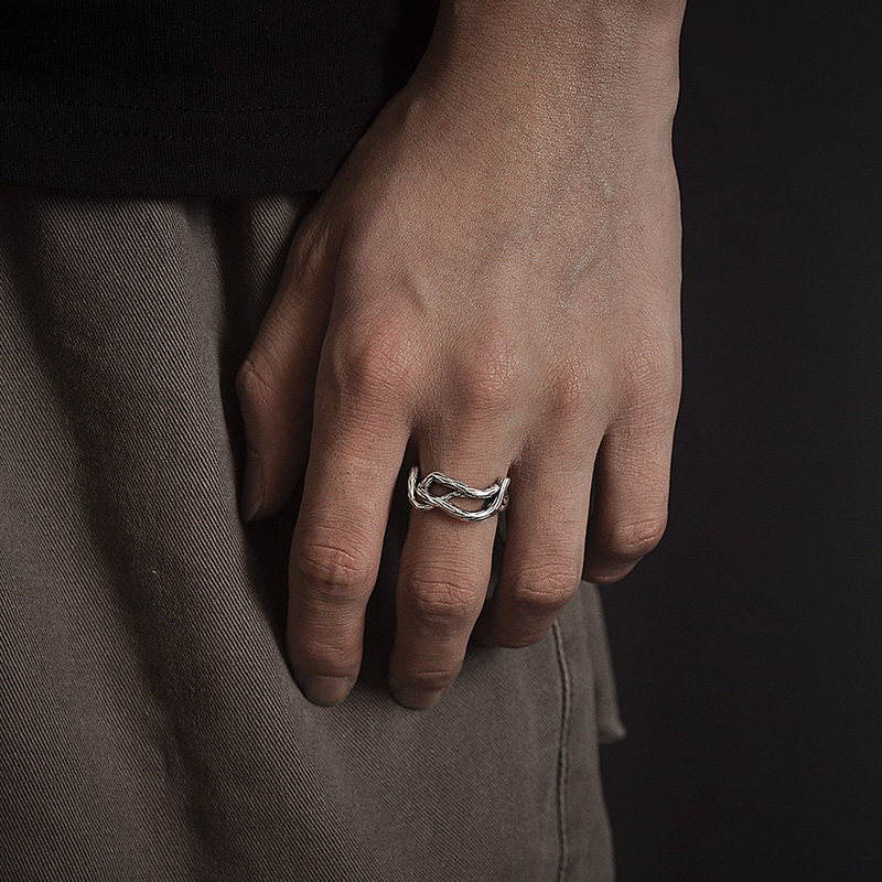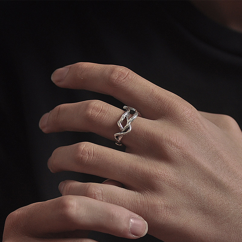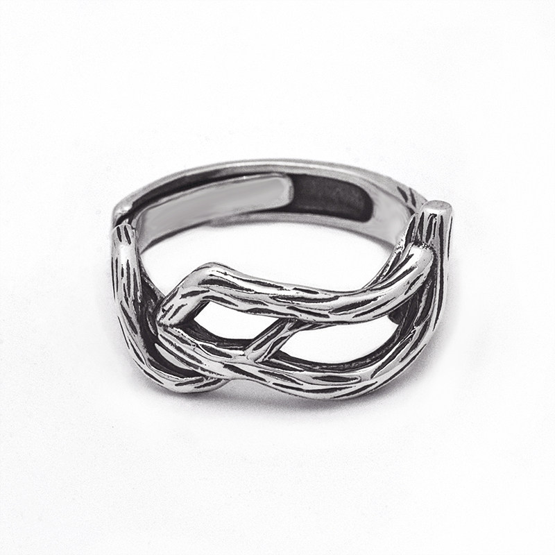 S925 pure silver original design personality textured branch opening ring lovers to ring men and women Taesilver retro