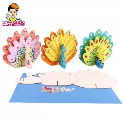 White embryo color three-dimensional Peacock open screen creative materials package kindergarten decorations handmade diy art painting