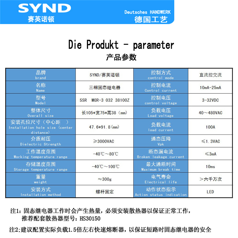 DC-controlled AC SA3-40100D three-phase solid state relay 100A MGR-3 032 38100Z
