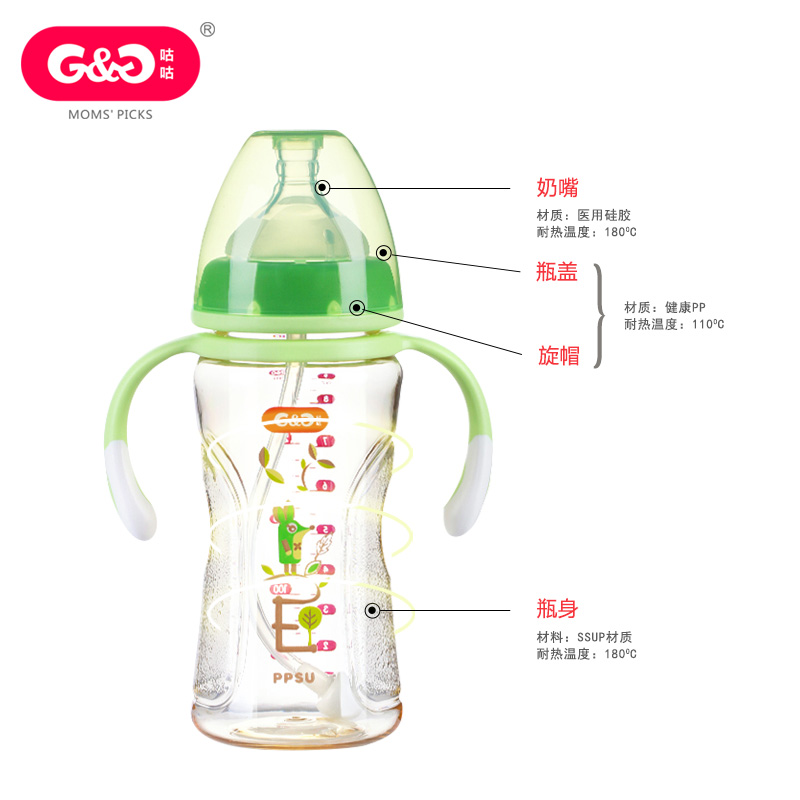 Coo-coo baby ppsu wide bore with gravity ball straw bottle with handle anti-flatulled gas anti-choking silicone nipple