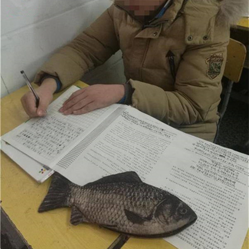 Shake the same simulation crucian carp pen bag coin purse Salted fish pen bag fish storage bag pencil box realistic spoof toy