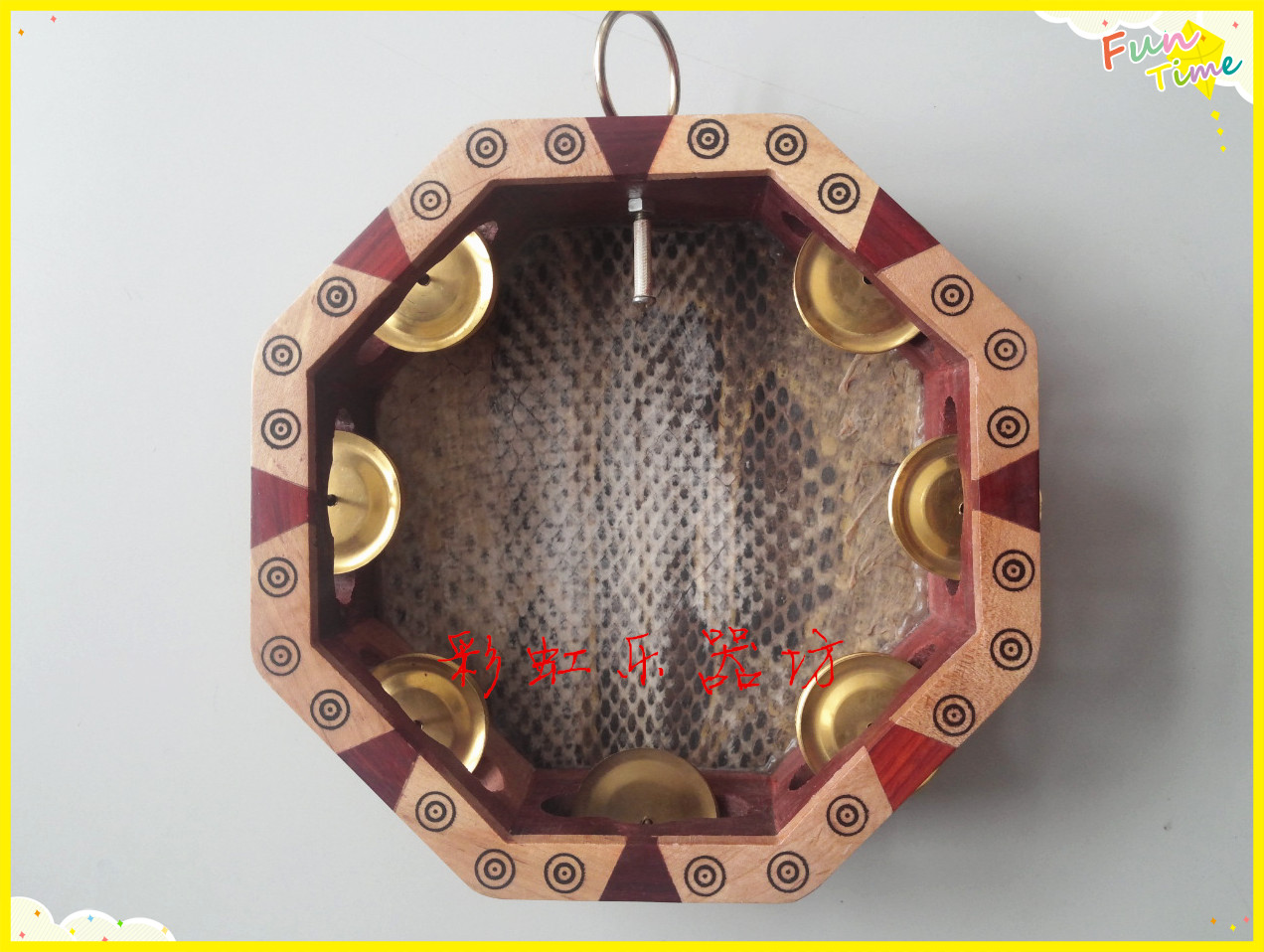 Octagonal drum Manchu folk art rap tambourine mahogany octagonal tambourine musical instrument drum python skin drum adult piano drum