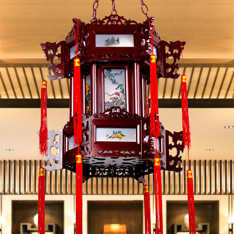 Solid wood walking horse Xiaogong lamp Hotel entrance Lobby Hotel aisle Lantern Balcony lamp Door chandelier lamp
