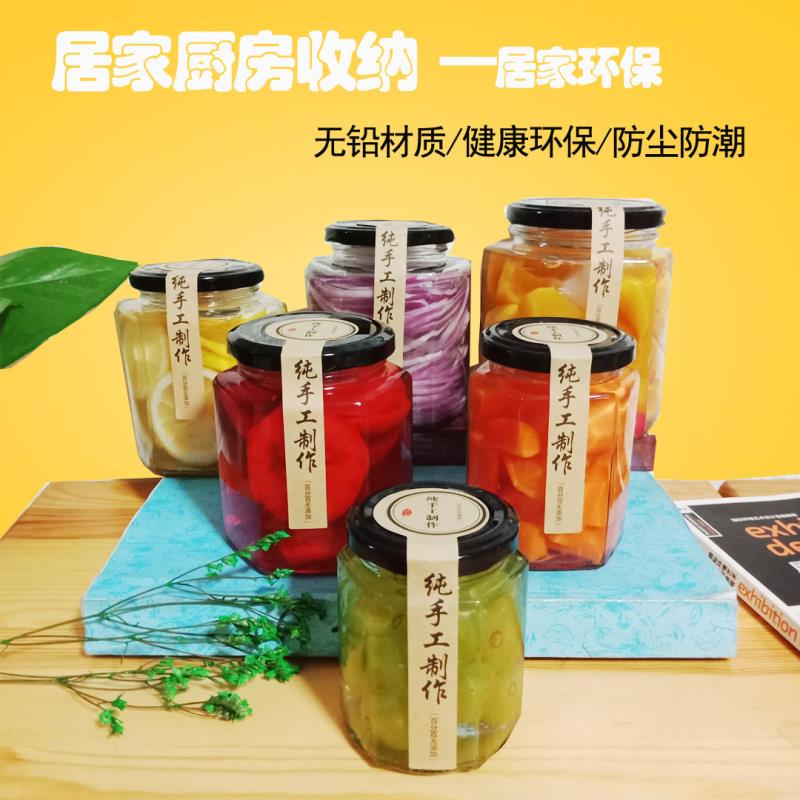 Hexagonal hexagonal glass bottle transparent sealed jar honey bottle lemon paste chili jam vegetable bottle canned bottle with lid