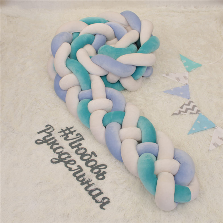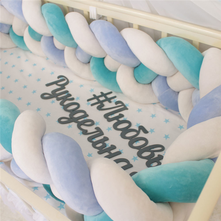 ins new 4 strands Danish braided strip knotted ball crib Anti-collision protection baby bed apron bed by