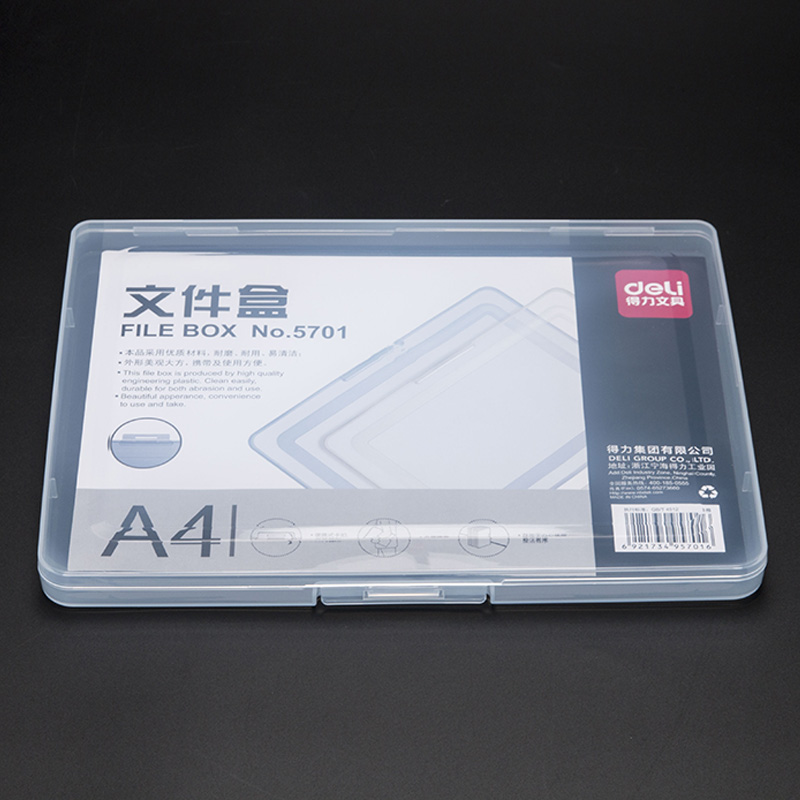Deli 5701 file box A4 transparent plastic document box Data storage box Office document finishing storage box