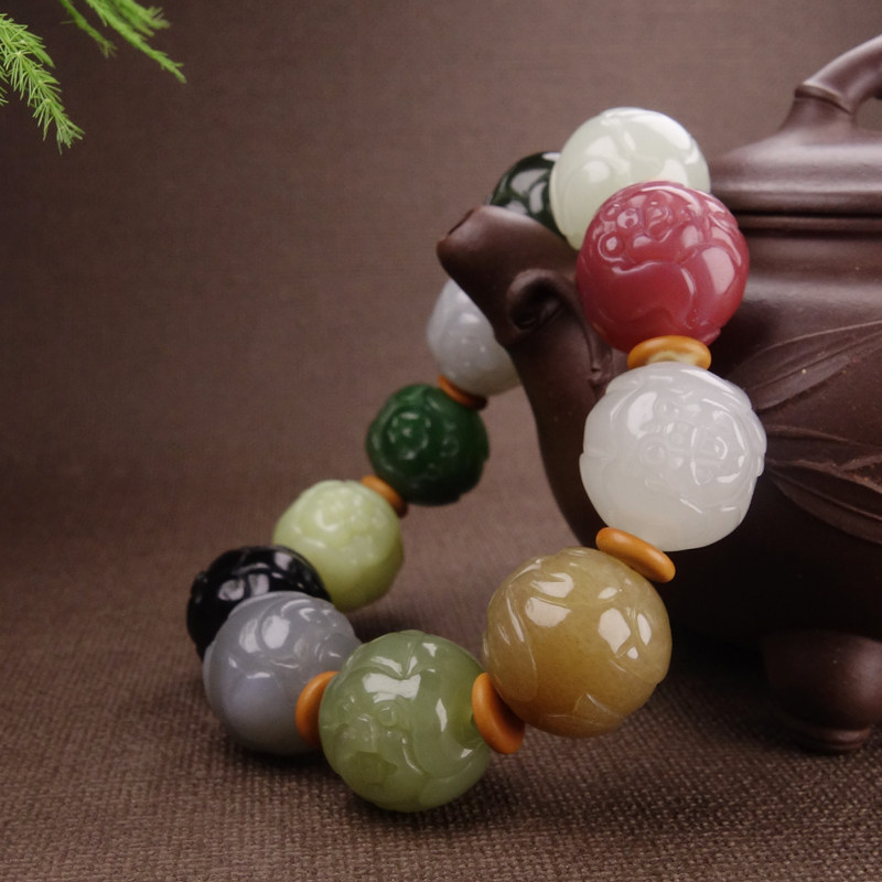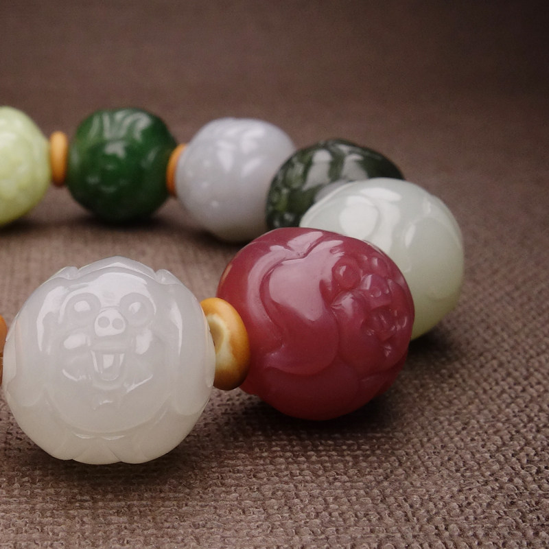 Bai Yusei's home Xinjiang and Tian Yufu qi hand string of jade south red ink jade male and female money to roll on the birth of a pig
