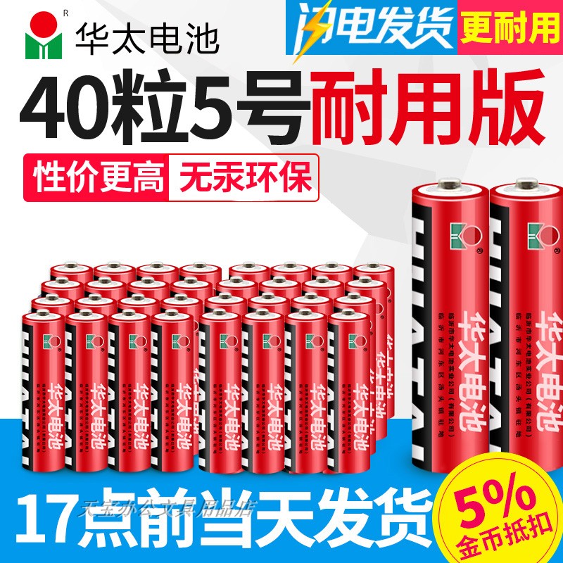Huatai No 5 AA carbon No 5 dry battery Mercury-free environmental protection children's toy battery 1 5V a set of 40