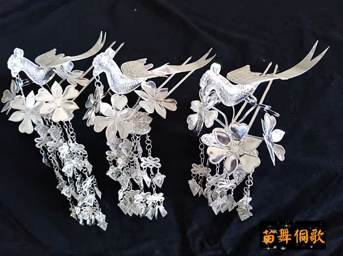 Stage performance hairpin ancient costume Hanfu accessories bride stage hair accessories headdress long tassel Miao silver hairpin hairpin