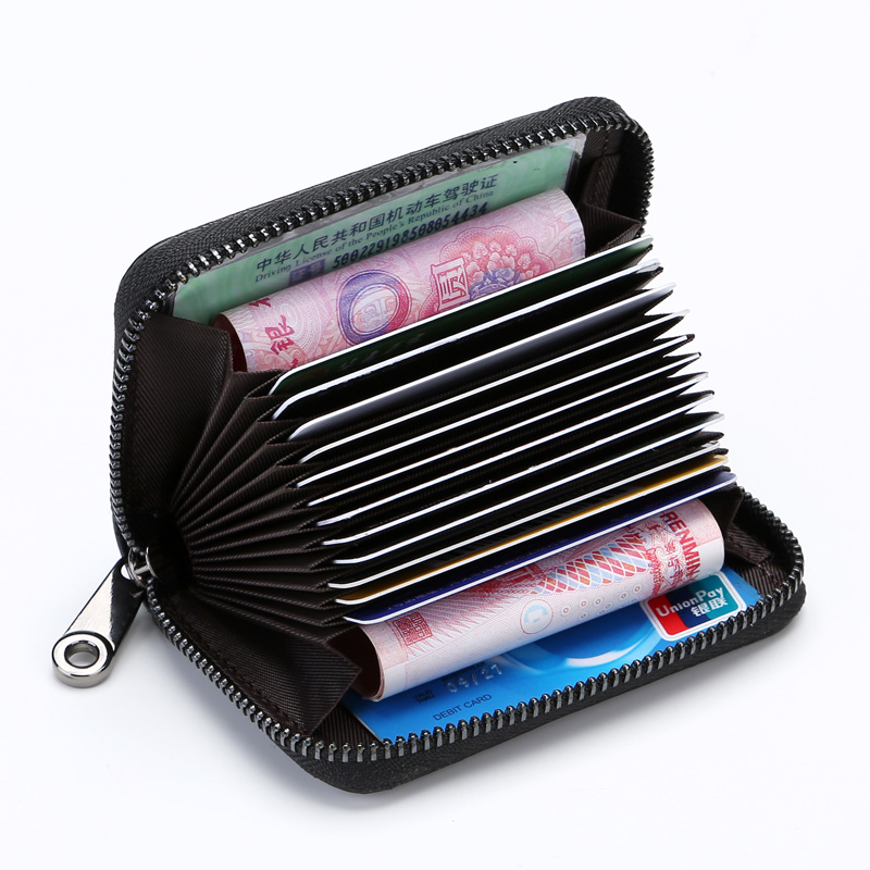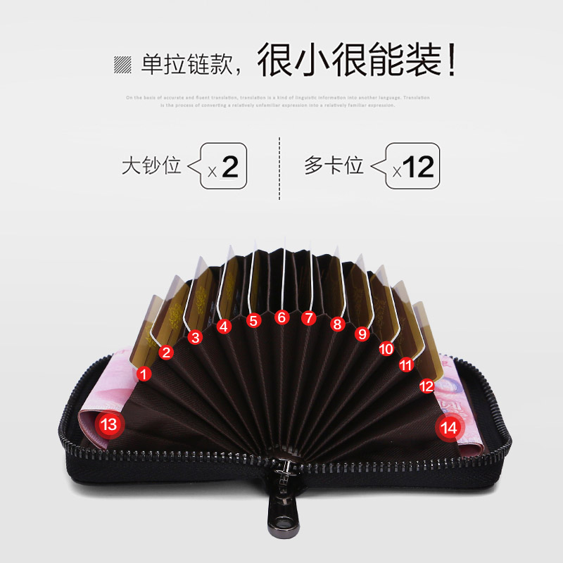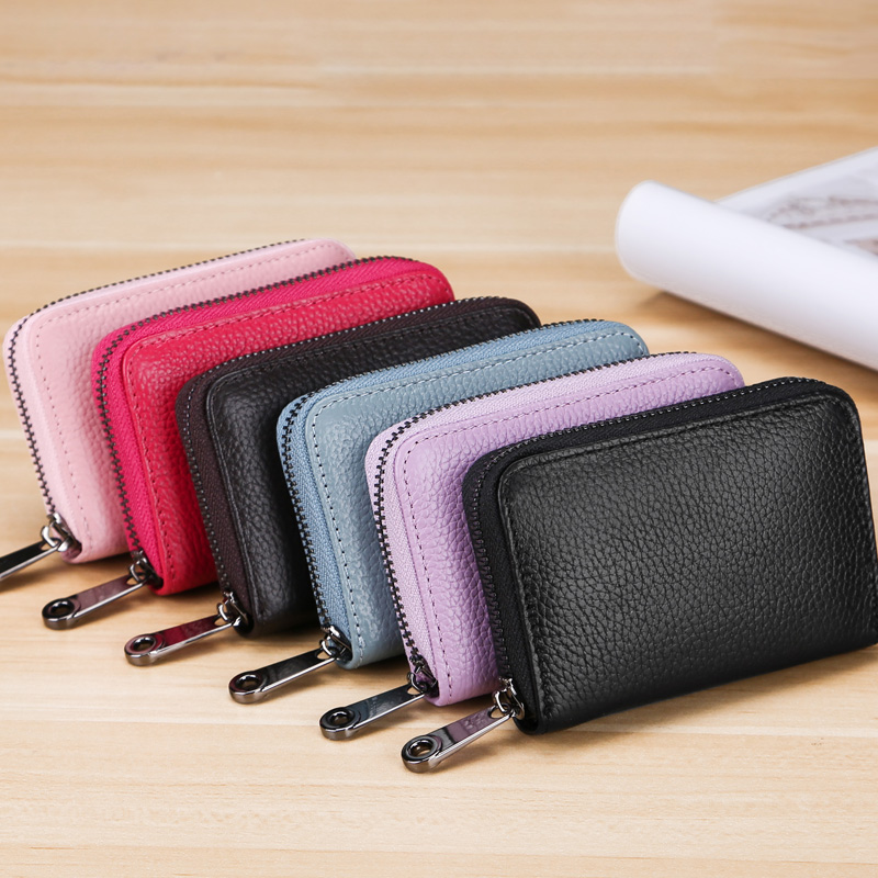 Card holder men's multi-card slot cowhide leather card holder zipper card holder women's Korean credit card holder organ card holder