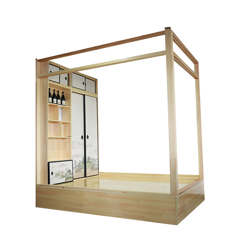 Full house custom tatami solid wood ground floor bed overall set to be bedroom wardrobe storage cabinet multifunction box furniture