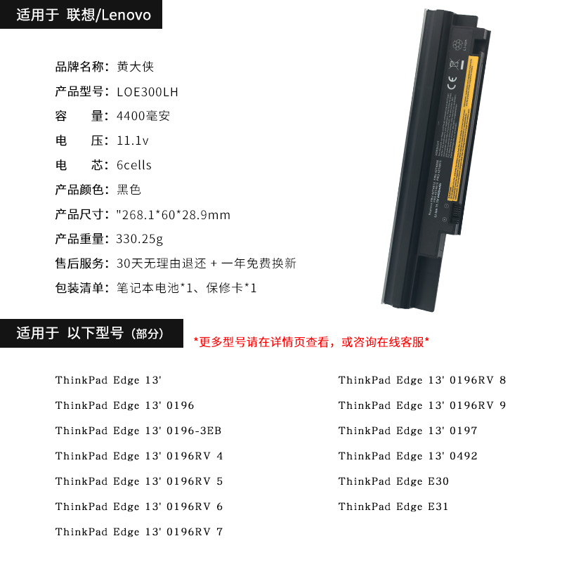 Huang Daxia Lenovo Edge 13 E30 E31 battery 42T4806 laptop battery 6 core