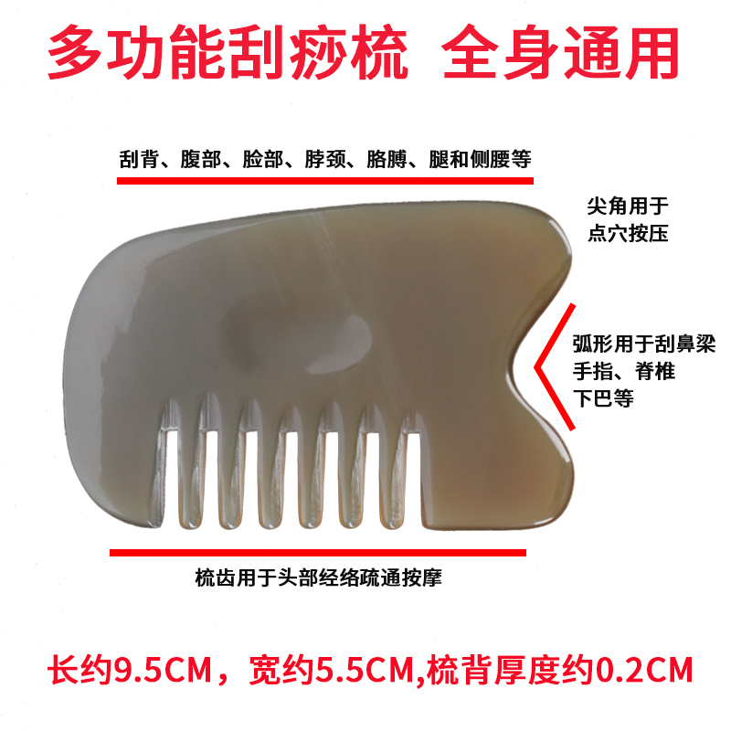 Head therapy scraping board comb real horn meridian comb massage head whole body through meridian neck scalp scalp home
