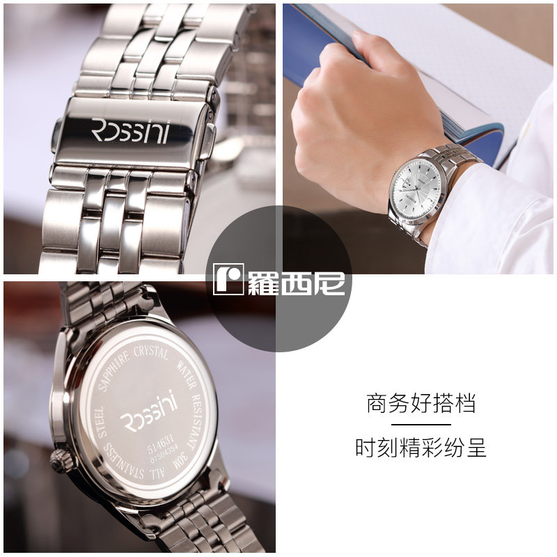 Rossini official watch fashion watch quartz watch stainless steel waterproof business calendar men's watch 514631