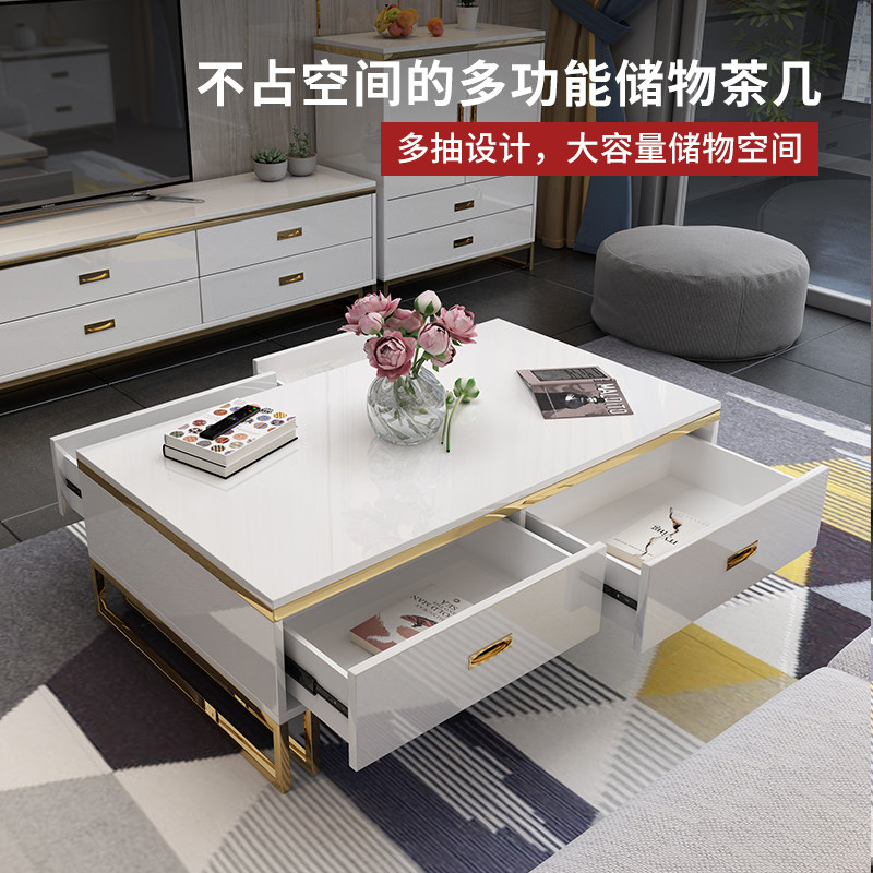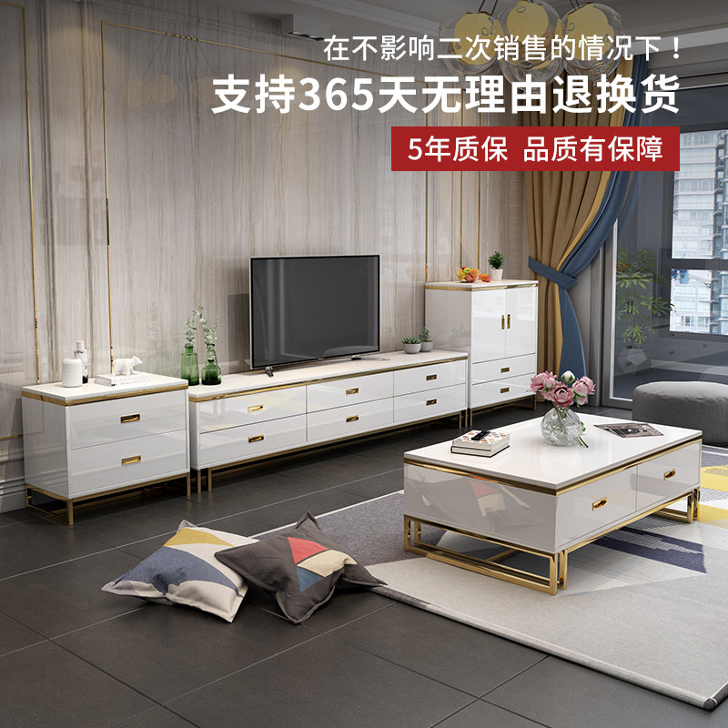Postmodern coffee table TV cabinet combination Simple small apartment living room stainless steel paint simple tea table