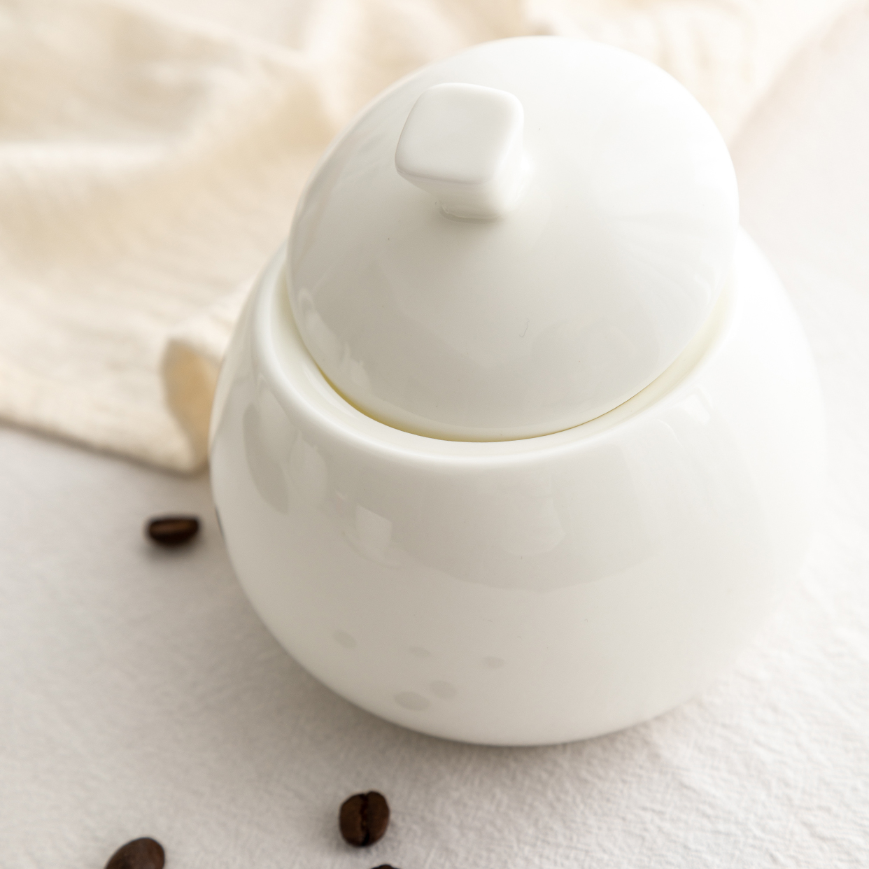 Bone China White Sugar Jar with Lid British Vintage Sugar Jar Sugar Cube Jar Ceramic White Sugar Jar Sugar Jar Logo Customized