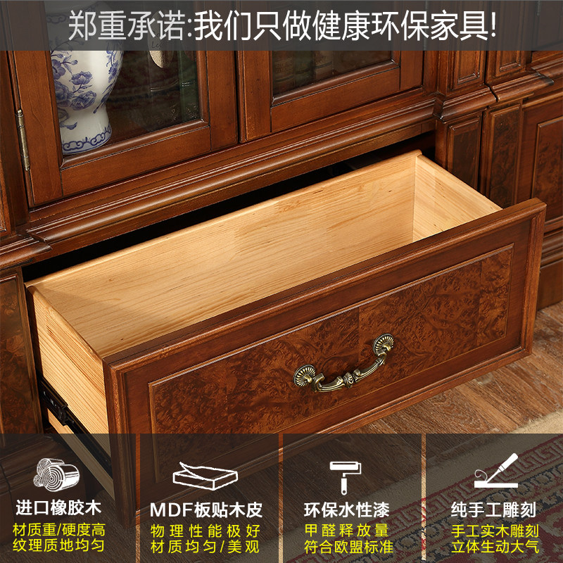 American bookcase combination solid wood luxury high-grade study furniture set combination European two-door floor single-door bookcase