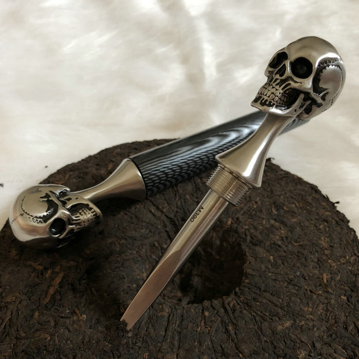 Damascus Ghost Head Tea Knife M390 Powder Steel Skull Tea Cone Kung Fu Tea Tool Tea Needle Pure Hand-Prying Tea