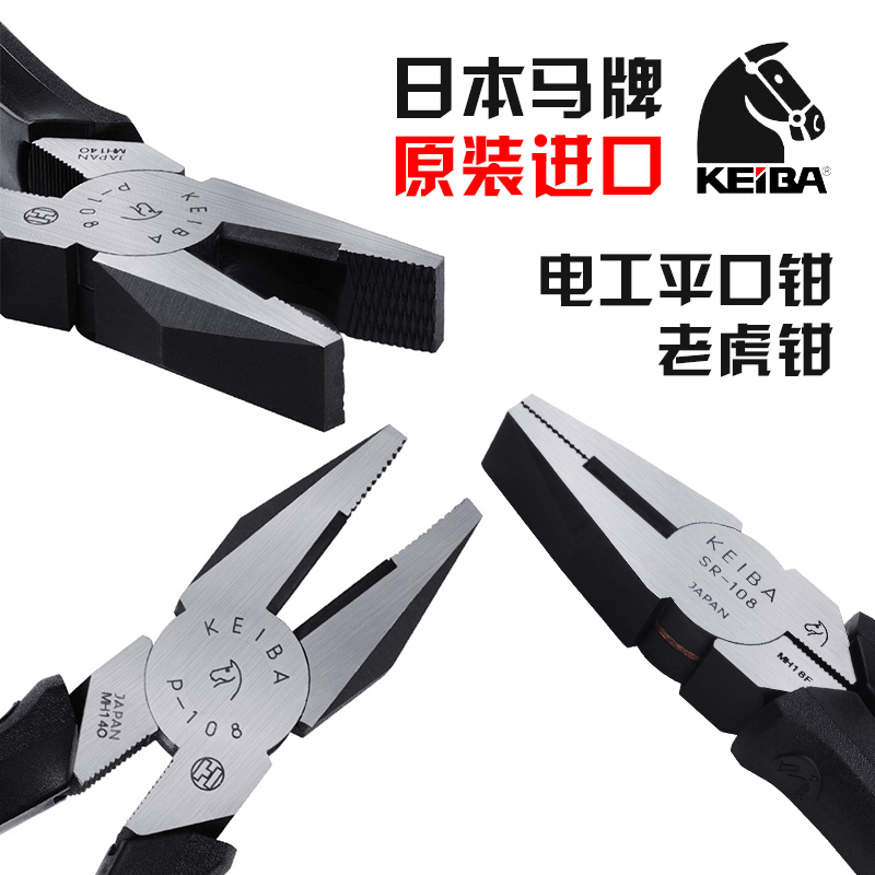 Japan imported horse brand KEIBA 7 6 8 inch electrical flat mouth pliers vise P-107