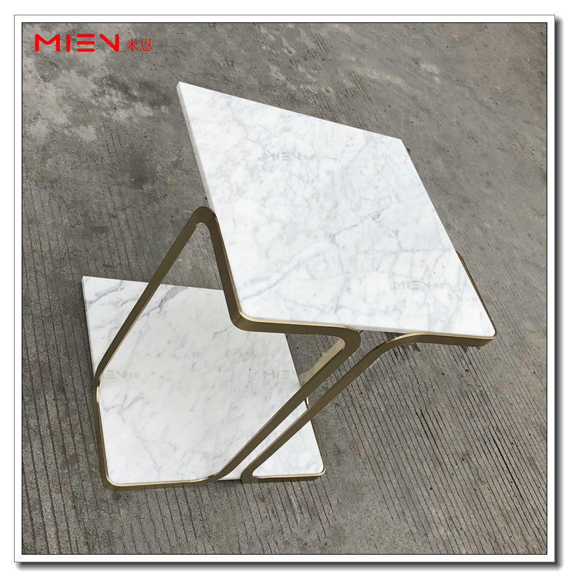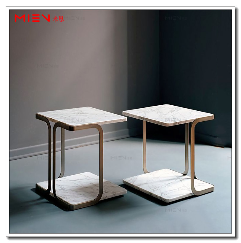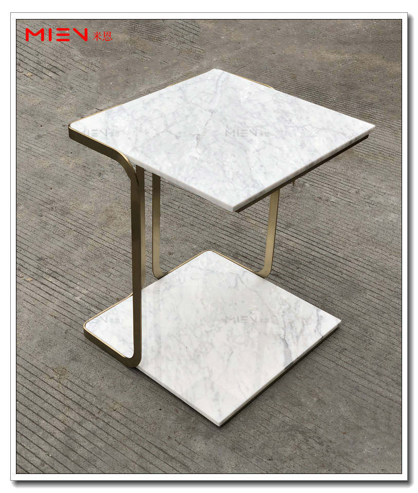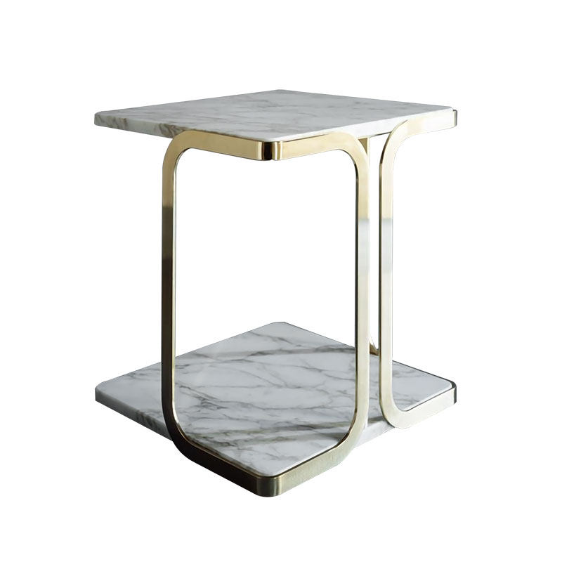 Nordic light and luxurious living room sofa edge a few square double layer fine white marble removable to contain stainless steel side table
