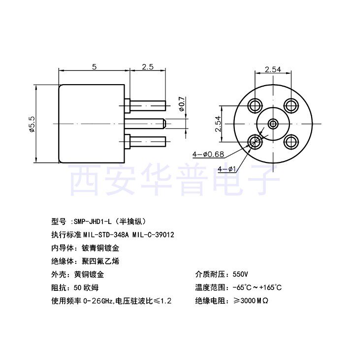 SMP-JHD1-L RF connector Small half escapement male head welding PCB board high frequency SMP-JE RF connector
