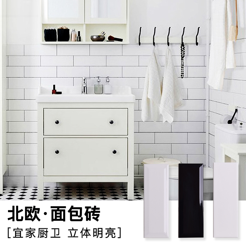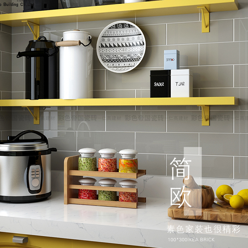 Nordic solid color kitchen small ceramic tile dressing room wall brick toilet 100x300 long white plane subway brick