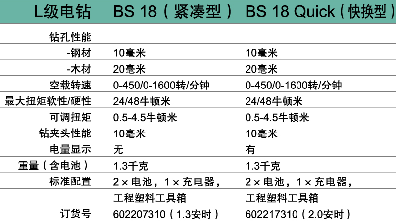 BS18Quick 2 0Ah (Quick Change) BS18 1 3Ah (Compact) BS18Quick Pro (with Angled converter)