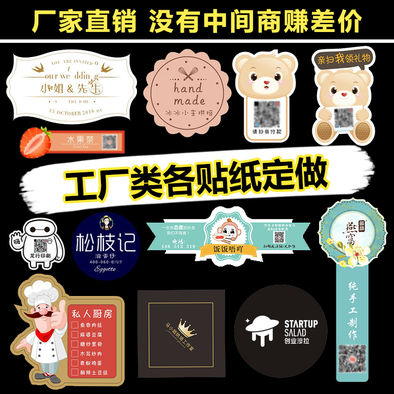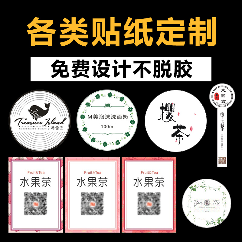 Adhesive printing design logo trademark custom two-dimensional code packaging sticker transparent label milk tea cosmetic stickers