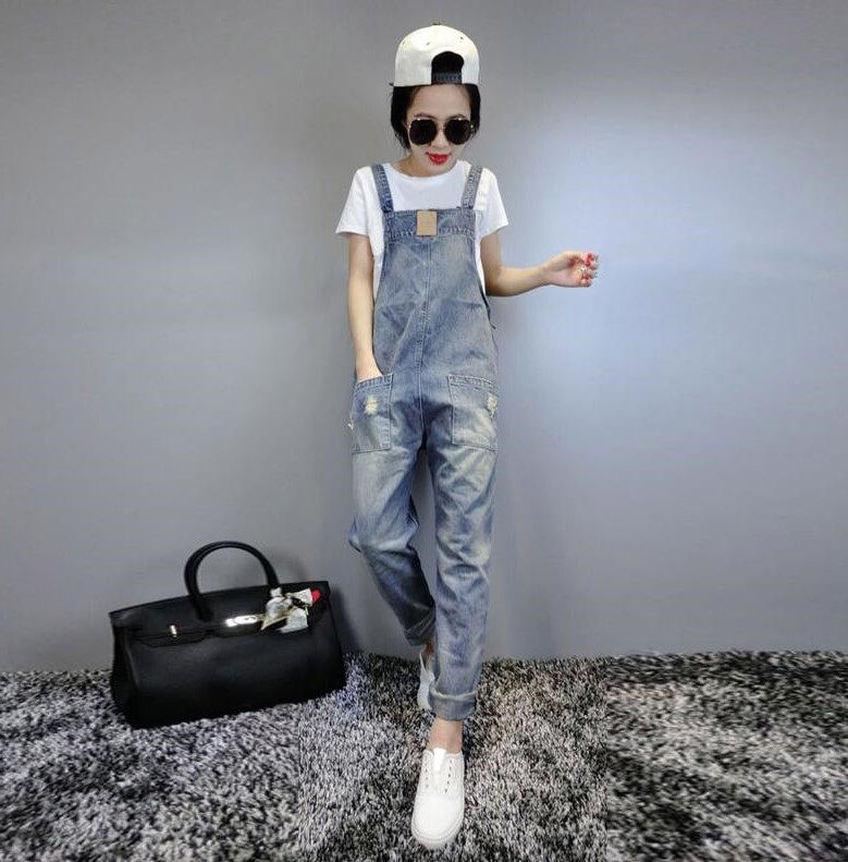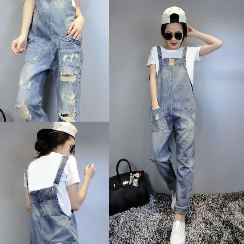 Hong Kong Chaobou stars in the same section 2021 new spring and summer season Lean Broken Hole Cuddling Bag Jeans Casual Pants Children Dress