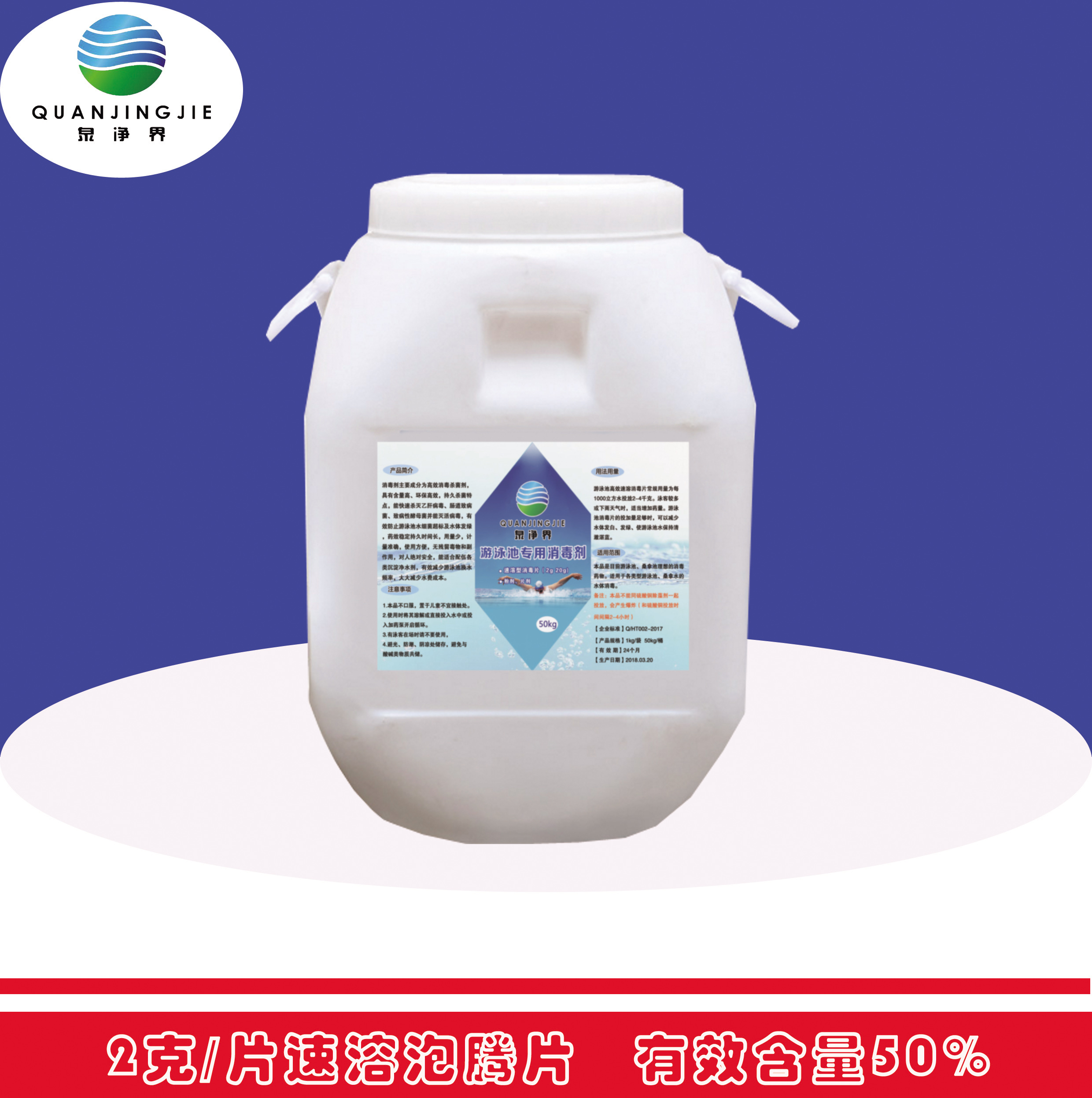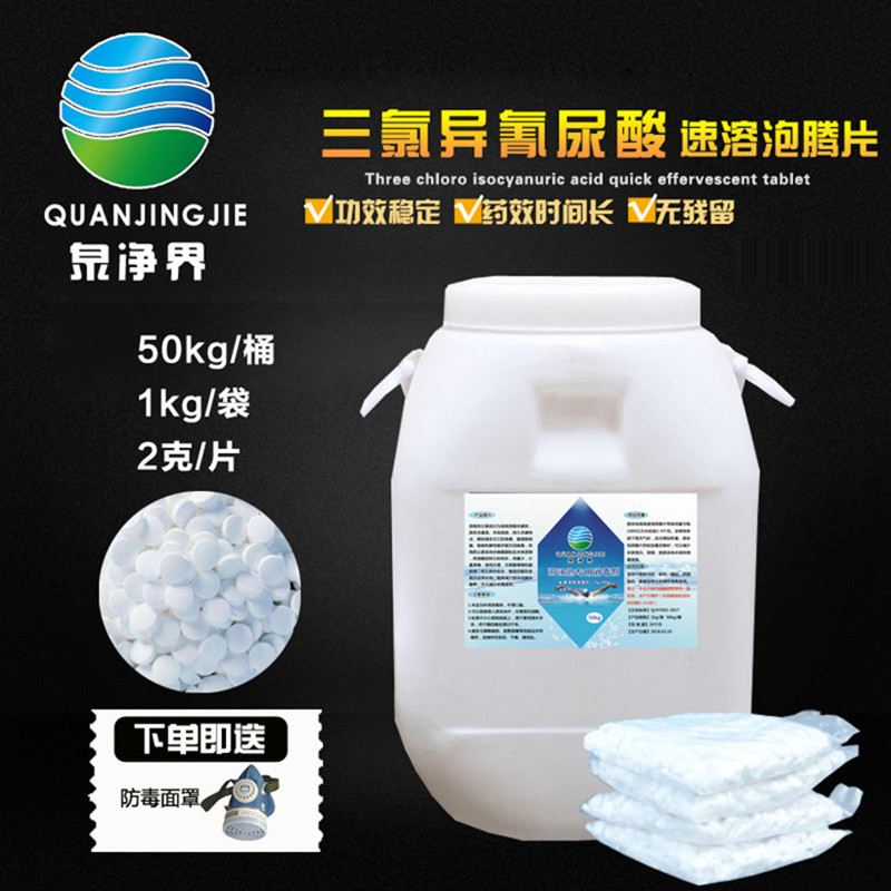 Spring net water swimming pool disinfectant content 90 trichloroisocyanuric acid 2 gr instant foaming ingot strong chlorine