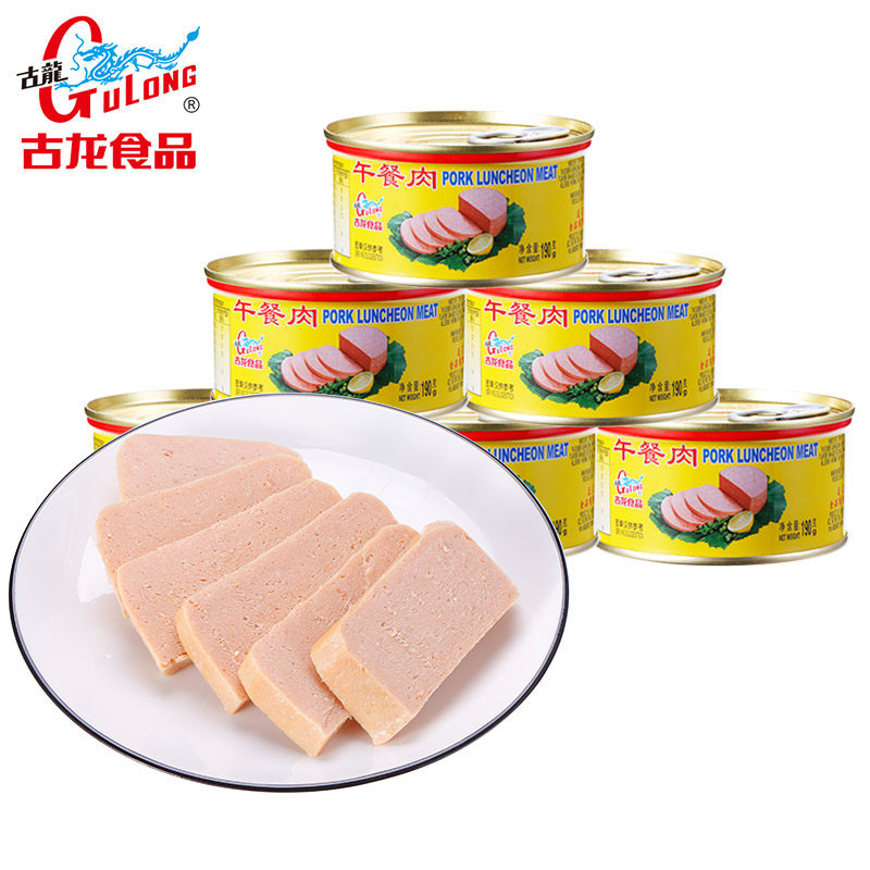 Gulong Food Luncheon Meat Canned Outdoor Convenience Ready-to-Eat Dormitory Pork Ham Sausage Cooked Food New Year's Goods 190g*6