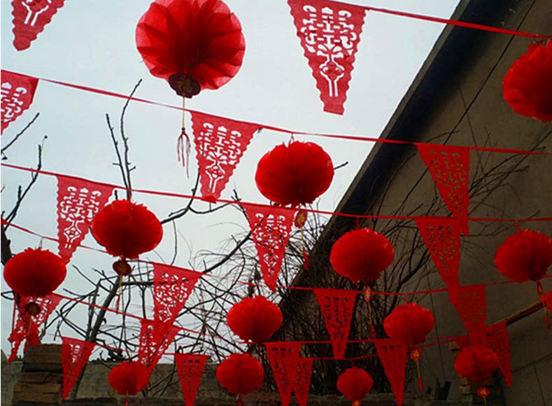 Wedding Triangle Strings Flag Opening and Flag Hanging Accessories Construction Site Color Flags Outdoor Decoration Wedding Xi Character Small Banner Scene Arrangement