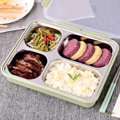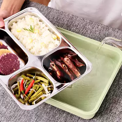 304 stainless steel insulation bento box Bento box Fast food plate grid student with lid Korean canteen large capacity adult