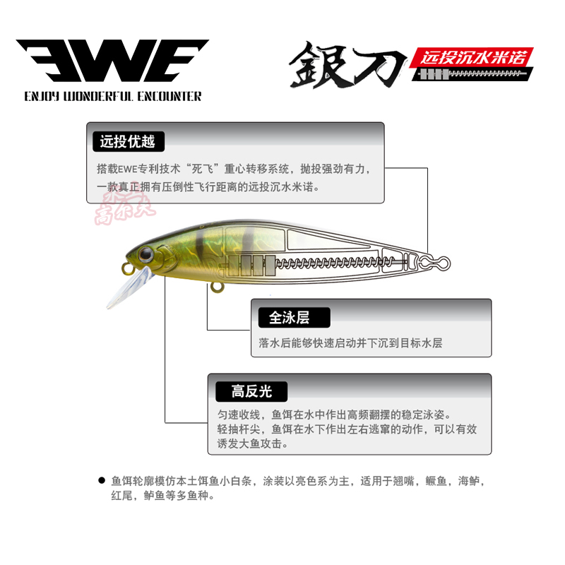 EWE Mexia silver knife sinking water Mino self - trembling Lu bait 7 g 10g 14 grams long cast red tail bait freshwater bait