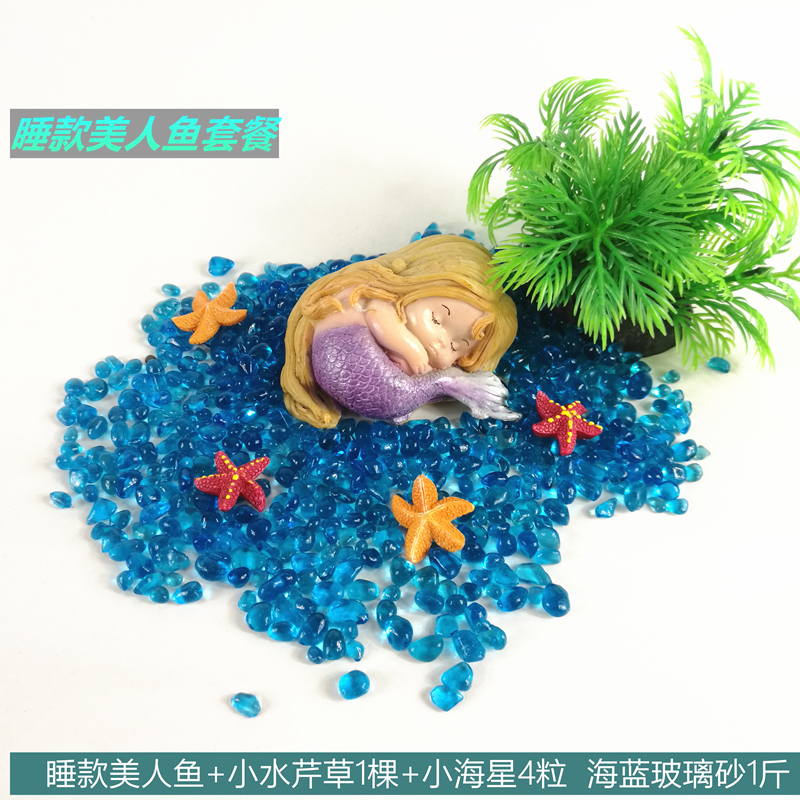 Small fish tank decoration and view package Simulation water package round glass goldfish tank color stone decoration fake mountain grass
