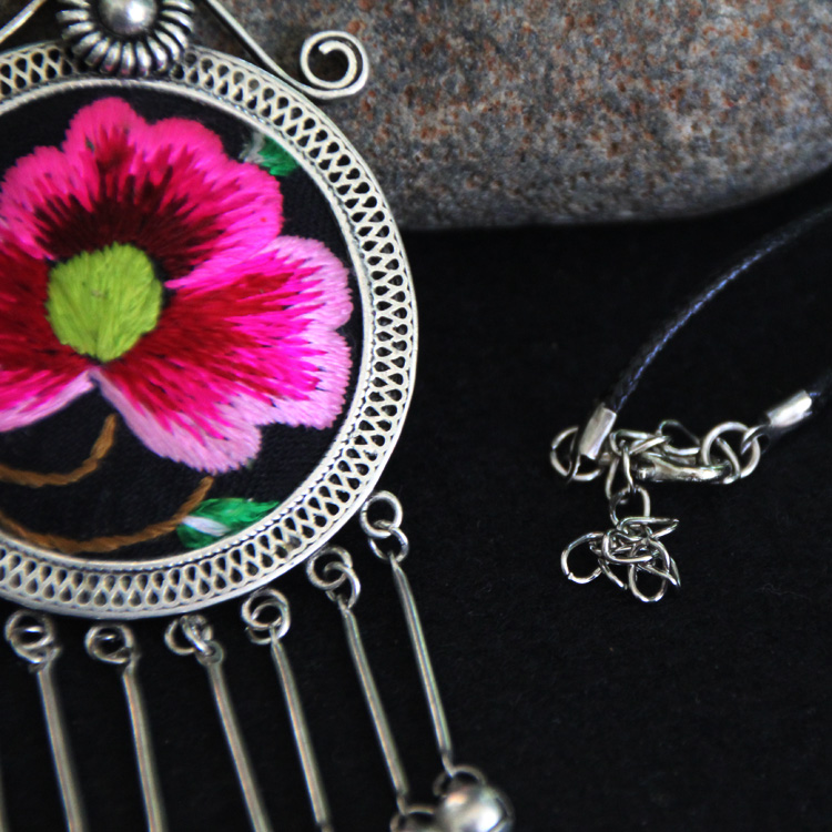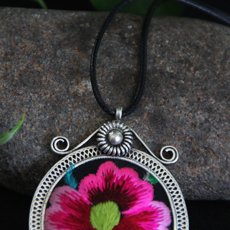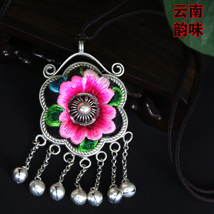 Yunnan original design hand - made silver embroidery necklace retro - personality pendant - national wind embroidered sweater chain