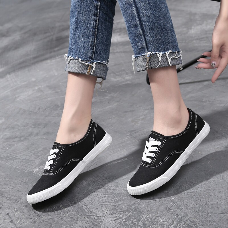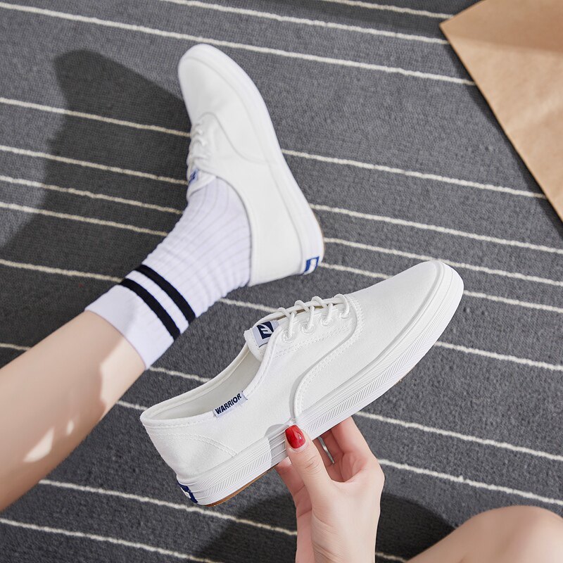 Warrior pull back women's shoes Korean version of the small white shoes low-top lace-up solid color student shoes breathable non-slip canvas shoes