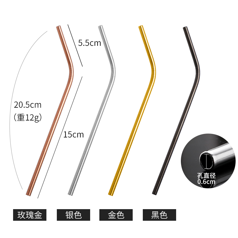 304 stainless steel straw eco-friendly straw drink cold drink juice milk tea straw elbow coffee stirring spoon metal
